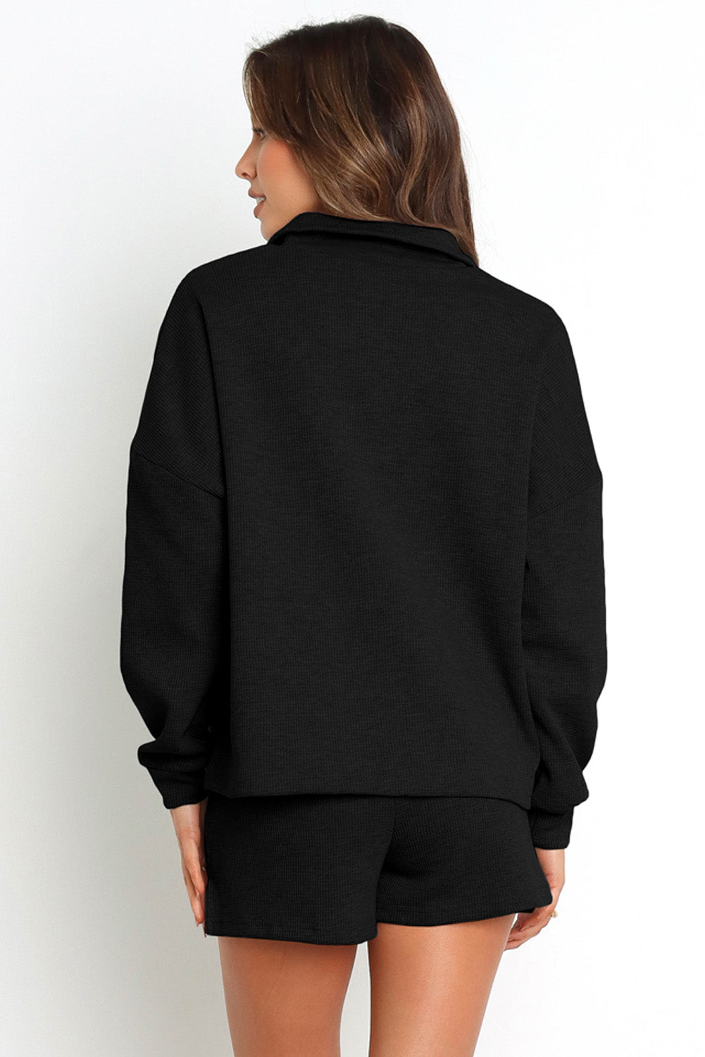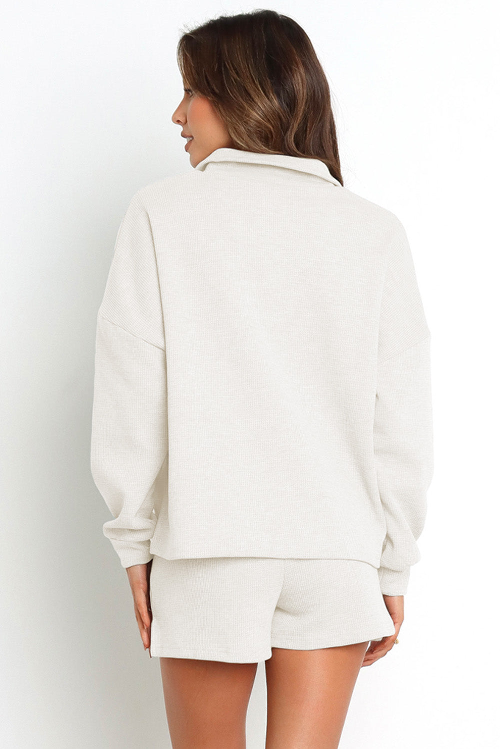 Collared Neck Zip-Up Top and Slit Shorts Set